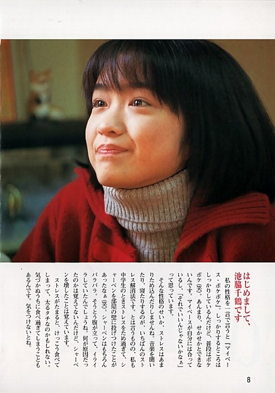 ≪プロフィール≫ 本名/池脇 千鶴 【いけわき ちづる】 出身/大阪府東大阪市 生年月日/1981年(昭和56年) 11月21日(土) 星座/さそり座 血液型/O型 身長 体重/155cm 41kg スリーサイズ/B80 W55 H85 趣味/料理 特技/ピアノ演奏、バレーボール ------------------------------------- 所属/よしもとクリエイティブ・エージェンシー ジャンル/女優 HP/Chizuru Ikewaki official web site ------------------------------------- ◆ イベント ◆ にほんのうた フィルム映画祭 〔トークショーゲスト〕 日程 : 3月11日(日) START 20:50 会場 : 新宿K's cinema ◆ 映 画 ◆ は☆さ☆み Hasami 〔主演:永井久沙江 役〕 配給<アートポート> ≪3月3日(土)~16日(金) 名古屋ピカデリーにて≫ ≪3月24日(土)~4月6日(金) シネマヴィレッジ8・イオン柏にて≫ ≪3月27日(火)~4月2日(月) 札幌蠍座にて≫ ◆ テレビ ◆ ドラマ タイトロープの女 〔主演:十倉由梨 役〕 <NHK総合> ≪毎週火曜 22:00~22:50≫
