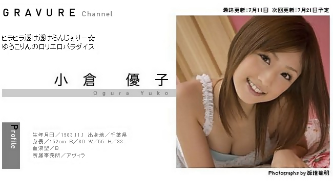 磯山さやか 241 磯山さやか 251 磯山さやか 261 磯山さやか 242 磯山さやか 252 磯山さやか 262 磯山さやか 243 磯山さやか 253 磯山さやか 263 磯山さやか 244 磯山さやか 254 磯山さやか 264 磯山さやか 245 磯山さやか 255 磯山さやか 265 磯山さやか 246 磯山さやか 256 磯山さやか 266 磯山さやか 247 磯山さやか 257 磯山さやか 267 磯山さやか 248 磯山さやか 258 磯山さやか 268 磯山さやか 249 磯山さやか 259 磯山さやか 269 磯山さやか 250 磯山さやか 260 磯山さやか 270 磯山さやか 271 磯山さやか 276 磯山さやか 281 磯山さやか 286 磯山さやか 272 磯山さやか 277 磯山さやか 282 磯山さやか 287 磯山さやか 273 磯山さやか 278 磯山さやか 283 磯山さやか 288 磯山さやか 274 磯山さやか 279 磯山さやか 284 磯山さやか 289 磯山さやか 275 磯山さやか 280 磯山さやか 285 磯山さやか 290 ≪プロフィール≫ 本名/磯山 さやか 【いそやま さやか】 出身/茨城県鉾田市 生年月日/1983年(昭和58年) 10月23日(日) 星座/てんびん座 血液型/A型 身長 体重/155cm -kg スリーサイズ/B88 W60 H85 趣味/スポーツ観戦(野球)、アイドル研究、ドライブ、ゴルフ 特技/野球スコアブック付け ------------------------------------- 所属/ホリエージェンシー ジャンル/グラビア、タレント、女優 ブログ/磯山さやかの♥♥(ラブラブ)、磯釣り一本! (Ameba) Twitter/sayaka23isoyama ------------------------------------- ◆ テレビ ◆ 地域情報 磯山さやかの旬刊!いばらき <テレビ朝日> ≪毎週金曜 10:50~10:53≫ バラエティ 秘密のケンミンSHOW <日本テレビ系> ≪6月16日(木) 21:00~21:54≫ バラエティ 人志松本の○○な話 <フジテレビ系> ≪6月17日(金) 23:00~23:30≫ ◆ ラジオ ◆ この人と語ろう <ラジオ日本> ≪毎週水曜 24:00~24:30≫ CLASSY CAFE <J-WAVE> ≪6月19日(日) 19:00~19:54≫ ◆ コラム ◆ 競馬コラム 磯山さやかの川崎競馬だぁ~い好き <netkeiba.com> ≪第14回 6月9日 更新≫ [一部Wikipedia(ウィキペディア)参考] 小倉優子 327 小倉優子 337 小倉優子 347 小倉優子 357 小倉優子 328 小倉優子 338 小倉優子 348 小倉優子 329 小倉優子 339 小倉優子 349 小倉優子 330 小倉優子 340 小倉優子 350 小倉優子 331 小倉優子 341 小倉優子 351 小倉優子 332 小倉優子 342 小倉優子 352 小倉優子 333 小倉優子 343 小倉優子 353 小倉優子 334 小倉優子 344 小倉優子 354 小倉優子 335 小倉優子 345 小倉優子 355 小倉優子 336 小倉優子 346 小倉優子 356 ≪プロフィール≫ 本名/小倉 優子 【おぐら ゆうこ】 出身/千葉県茂原市 生年月日/1983年(昭和58年) 11月1日(火) 星座/さそり座 血液型/B型 身長 体重/162cm 43kg スリーサイズ/B80 W56 H83 趣味/カラオケ、料理 特技/ピアノ、フルート ------------------------------------- 所属/AVILLA 【アヴィラ】 ジャンル/グラビア、タレント、女優 ブログ/小倉優子の こりん星のお食事って? (ココログ) Twitter/yukorin_o ファンクラブ/サポーターズクラブ「Fami♥りんこ」 (BEWE) モバイル/小倉優子の こりん星のお食事って? ------------------------------------- ◆ テレビ ◆ クイズバラエティ さんまのSUPERからくりTV <TBSテレビ系> ≪毎週日曜 19:00~19:57≫ バラエティ ザキ神っ!~ザキヤマさんとゆかいな仲間たち~ ≪毎週金曜 25:25~25:55≫ <TBSテレビ(ローカル)> バラエティ ノブナガ (準レギュラー) <中日放送(TBS系)> ≪毎週土曜 24:58~25:58≫ 北海道≪毎週水曜 24:56~25:56≫(95日遅れ) ◆ ラジオ ◆ 飛び出せ!イマドキッ <MBSラジオ> ≪毎週土曜 24:00~25:00≫ [一部Wikipedia(ウィキペディア)参考]